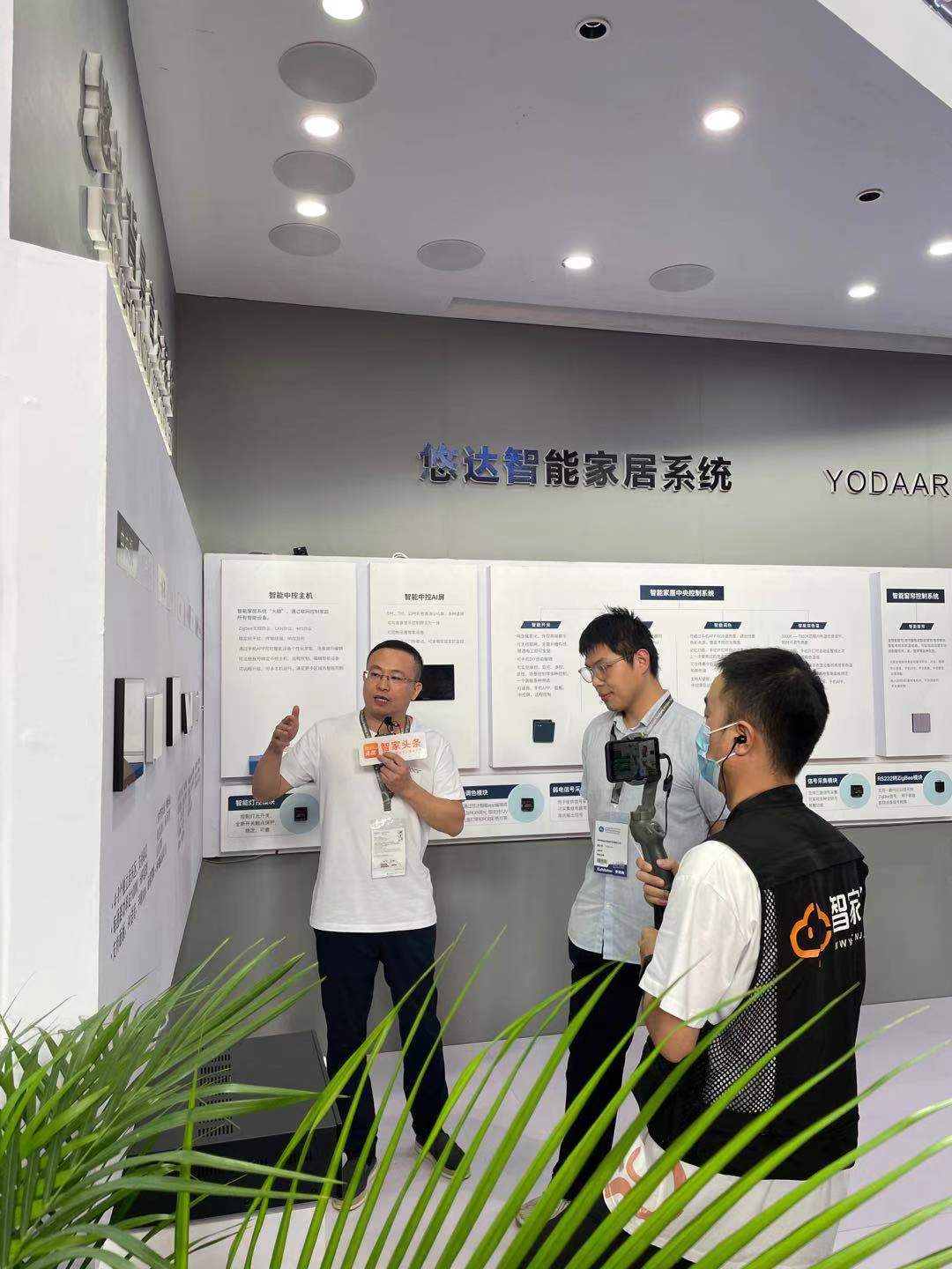 展會上,悠達也悉數展出了高端智能面板、智能AI中控屏、智能燈光、窗簾、影音、安防、云門鈴等全系智能產品。不僅如此,智能家居領域專業門戶平臺智家網還對悠達展位進行了現場直播,悠達副總經理吳天舒先生通過對悠達產品與特色進行在線展示與介紹,向更多受眾展示出了自身品牌實力。