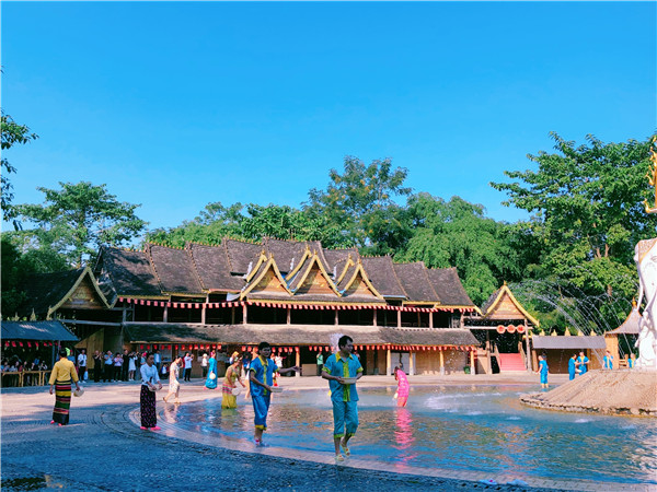 身穿傣家服飾,手拿水盆,灑滿陽光的傣族園潑水廣場上,歌聲伴著歡笑,象征著吉祥、幸福、健康的朵朵水花在空中綻放,悠達(dá)小伙伴親身體驗了一次傣族潑水節(jié)的盛況。